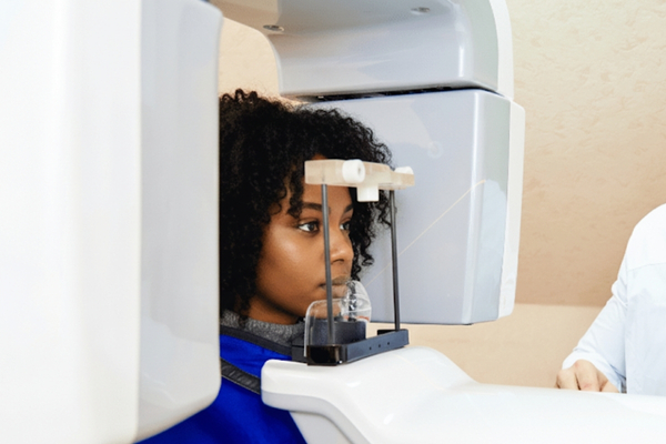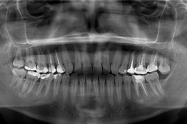 A Panorâmica é uma radiografia extraoral que fornece uma imagem bidimensional de toda a boca em uma única tomada. Ela permite uma visão geral das arcadas dentárias, maxila, mandíbula, seios da face e articulações temporomandibulares (ATM). É um exame de triagem fundamental para a avaliação inicial, detecção de cáries extensas, cistos, tumores, avaliação de dentes do siso e análise do suporte ósseo, sendo a base de muitos diagnósticos na odontologia.