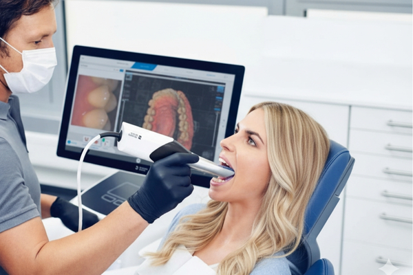 Escaneamento Intra Oral é uma tecnologia de ponta que cria um modelo digital 3D preciso dos dentes e gengivas sem a necessidade das incômodas moldagens tradicionais. Esse processo é rápido, confortável e resulta em um arquivo digital de alta fidelidade, essencial para o planejamento de próteses, alinhadores transparentes (ortodontia) e guias cirúrgicos. Ele reflete nosso valor de inovação, oferecendo ao paciente o máximo de conforto e ao dentista a máxima precisão.
